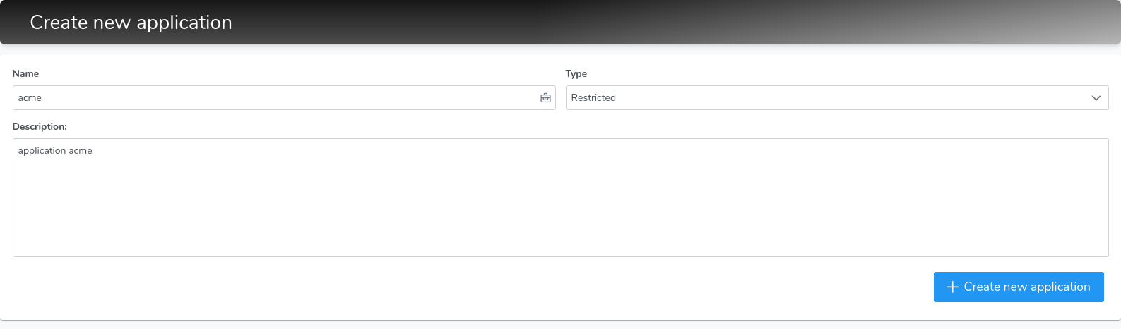 An application is the definition of a group of controls and services. Typically an application represents the group of services used to provide a functionality.