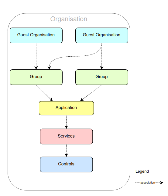 Navigation : Support Authentication and Authorisation Getting started Platform components - Overview - Controls - Services - Groups - Organisations - Users - Applications Overview Platform components Controls